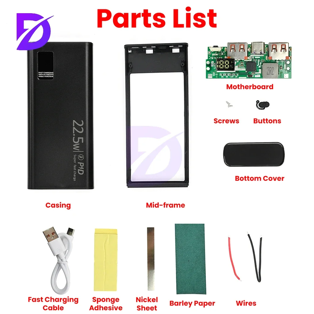DIY Power Bank Box PD 22,5 W Schnellladekoffer Zuverlässige universelle tragbare 18650 USB Power Bank für Smartphone
