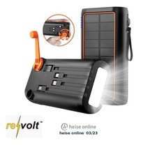 revolt Kurbel-Dynamo-Solar-Powerbank, 30.000 mAh, PD 20 W, Super Charge, LED